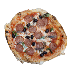 Crispy Pepperoni, Anchovies, Capers, Olives, Chilli Flakes, Cheese, Parmesan, Basil, House-made Tomato Sauce BaseGluten Free Base 12"