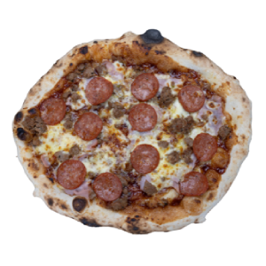 Crispy Pepperoni, Smoked Leg Ham (From Saratoga Butchers), Beef Sausage (Saratoga Butchers), Cheese & Our Infamous BBQ Sauce BaseGluten Free Base 12"