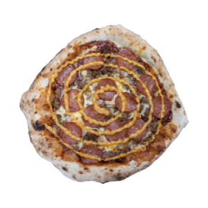 Crispy Pepperoni, Beef Sausage (Saratoga Butchers), Spanish Onion, Cheese & Our Infamous BBQ Sauce Base with A Swirl Of Peri Peri SauceGluten Free Base 12"
